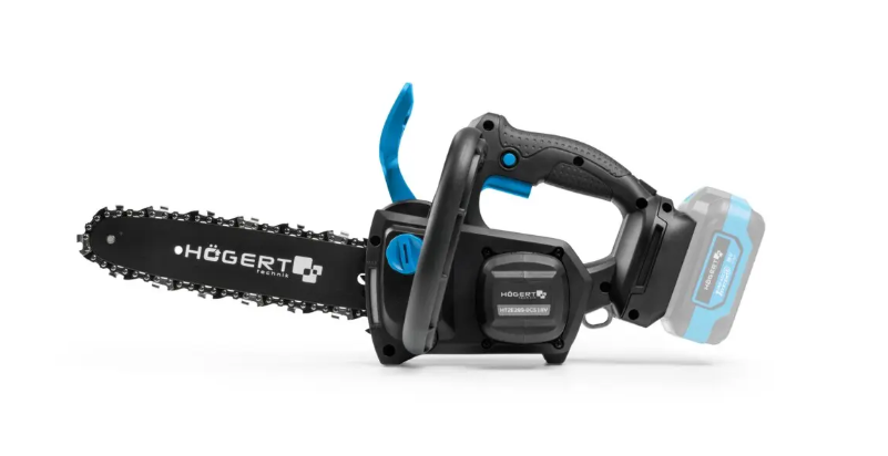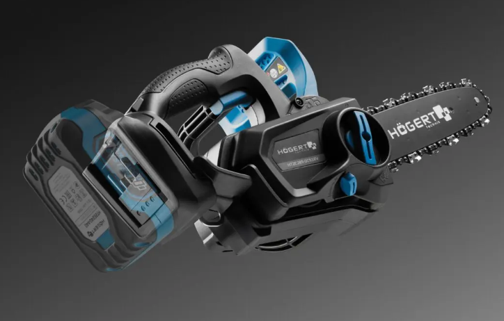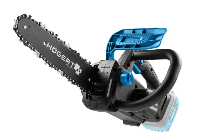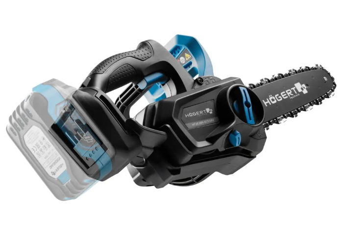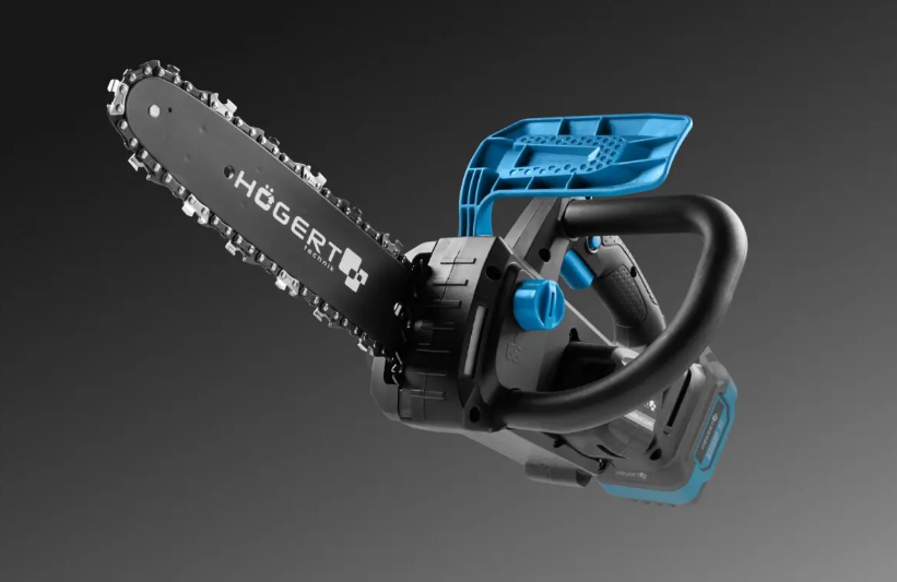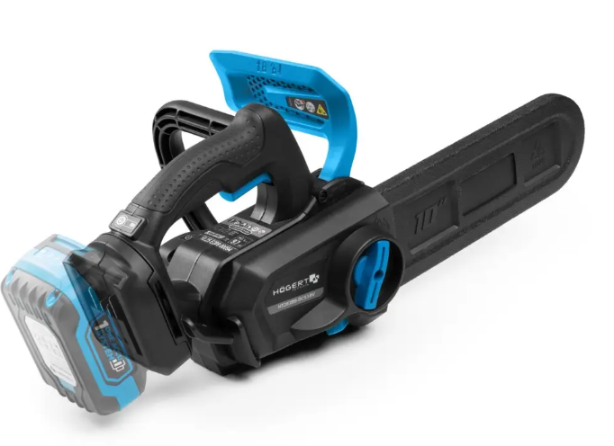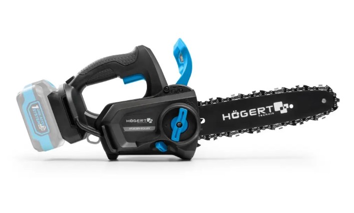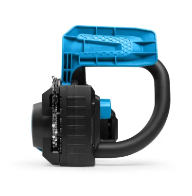 Akumulatorowa pilarka łańcuchowa przeznaczona do prac ogrodowych i przydomowych, takich jak przycinanie gałęzi, cięcie drewna opałowego czy prace porządkowe wokół posesji.