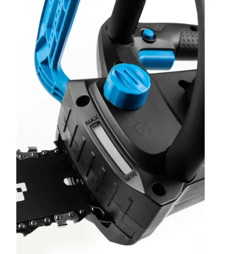 Zastosowany beznarzędziowy system napinania łańcucha umożliwia szybkie i wygodne ustawienie prawidłowego napięcia bez użycia kluczy, co ułatwia bieżącą obsługę i poprawia bezpieczeństwo pracy.