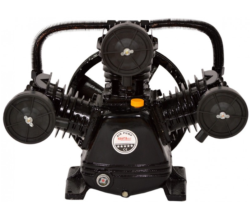 Sprężarki powietrza produkowane przez firmę Kraft&Dele wyróżniają się bardzo dobrą jakością wykonania oraz ogromną wytrzymałością. Pompa smarowana jest olejem, wyposażona w koło pasowe, które jednocześnie chłodzi kompresor oraz boczną chłodnicę powietrza.