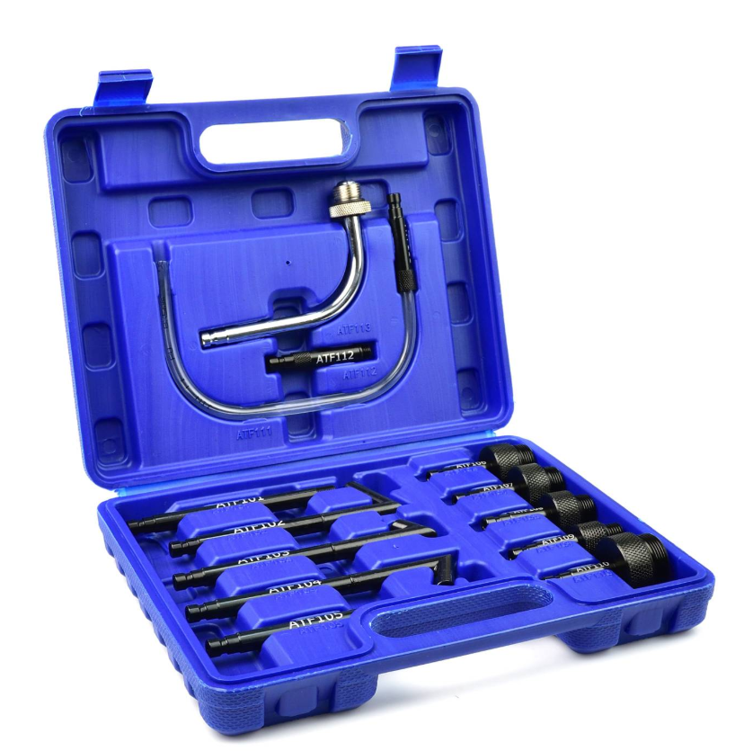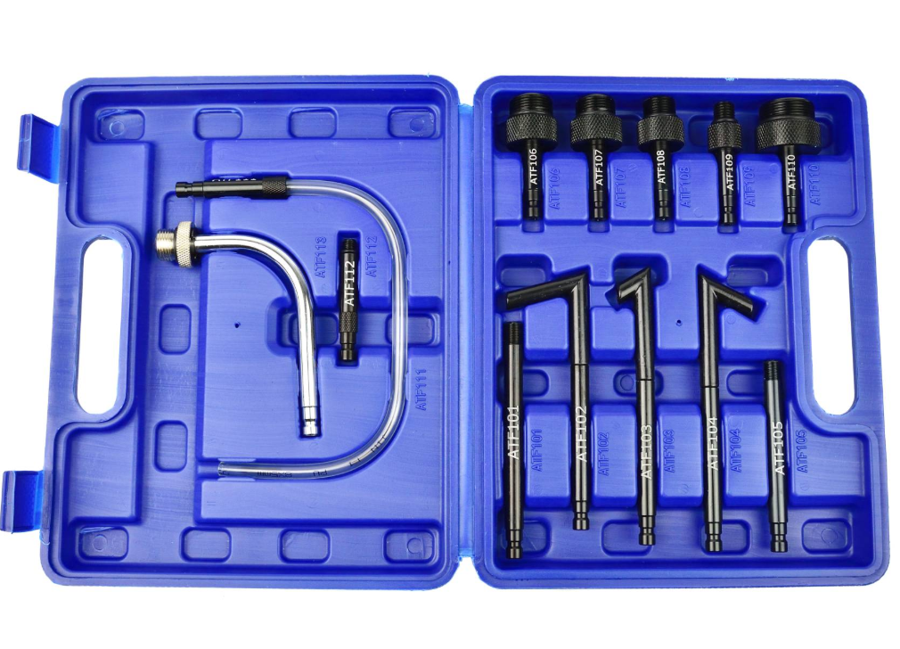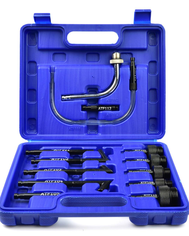 Zestaw dedykowanych adapterów do wymiany i uzupełniania oleju w automatycznych skrzyniach biegów. W skład zestawu wchodzi 13 adapterów umożliwiających obsługę skrzyni biegów najpopularniejszych marek samochodów osobowych.