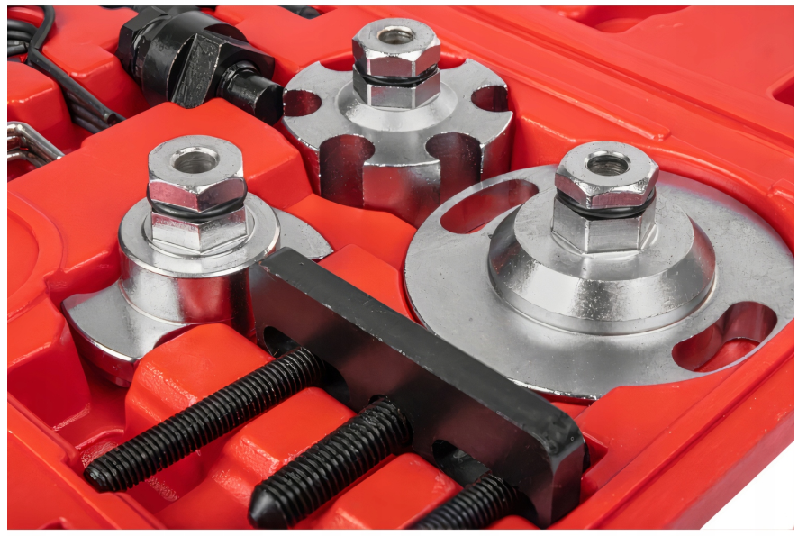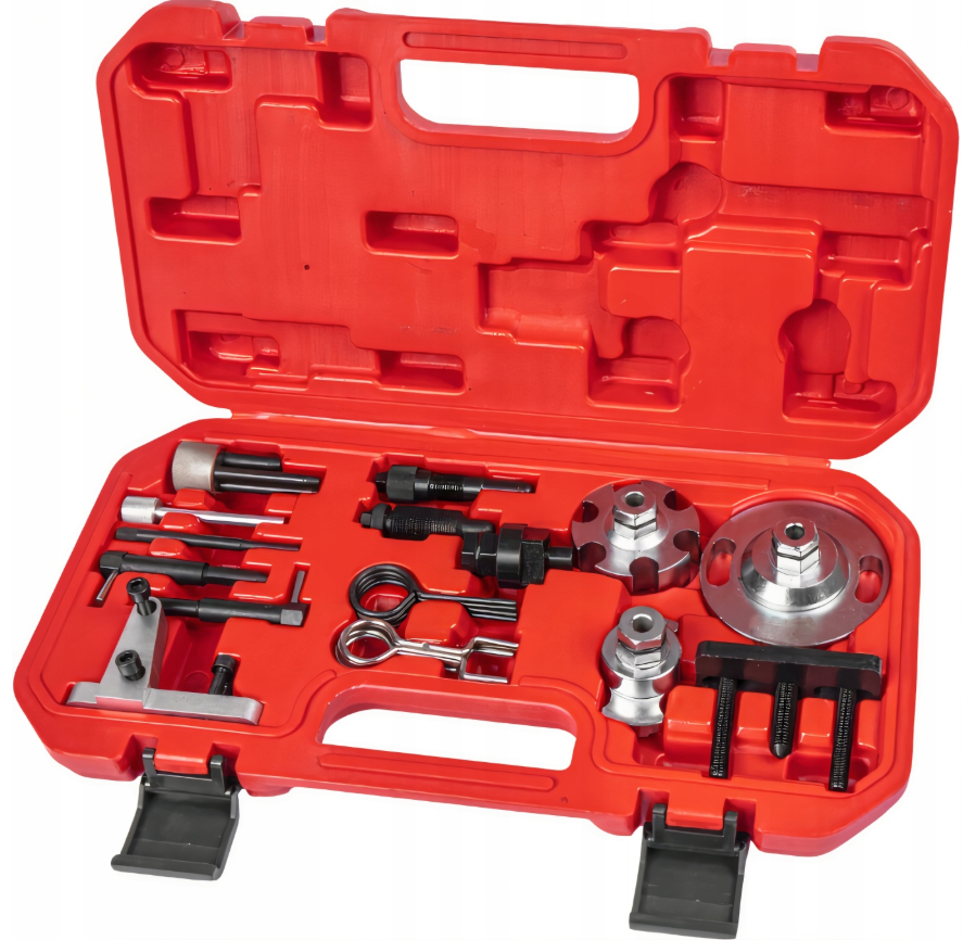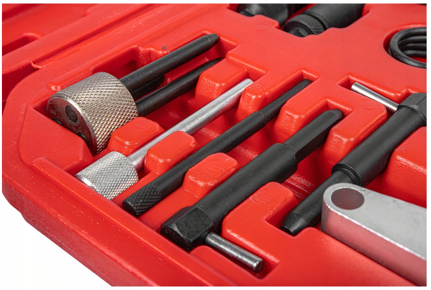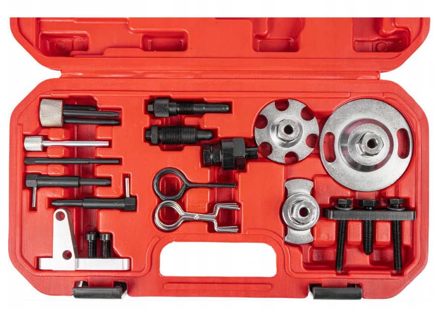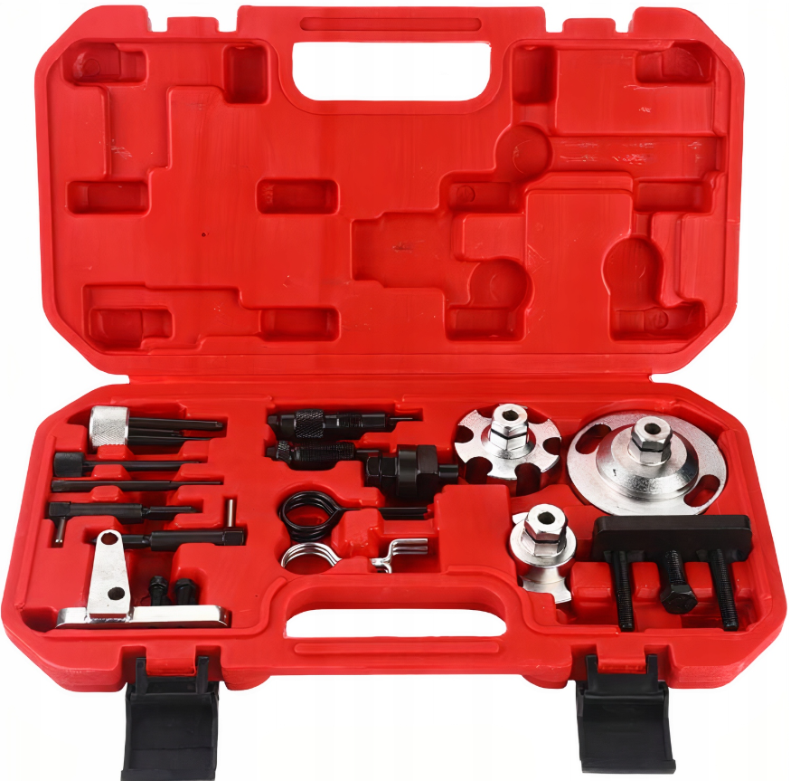 Profesjonalny przyrząd do blokowania kół rozrządu. Zestaw umożliwia unieruchomienie kół zębatych rozrządu w pozycji serwisowej, podczas wymiany paska rozrządu.