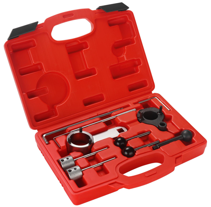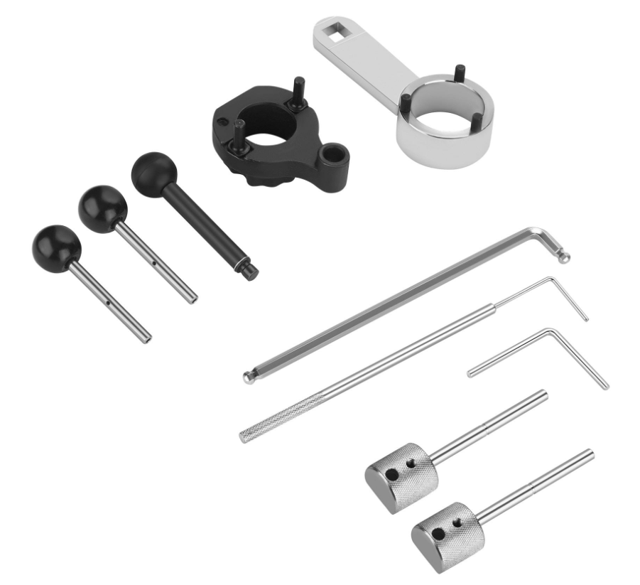 Zestaw wykonany został z wysokiej jakości stali, co gwarantuje jego trwałość oraz niezawodność w użytkowaniu. Narzędzia są idealnie dopasowane do wskazanych jednostek napędowych, co sprawia, że ich użycie jest łatwe i skuteczne podczas wymiany paska rozrządu.