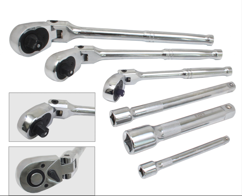 Przedłużki oraz grzechotki wykonane zostały z wysokiej jakości materiału Cr-V oraz wykończone chromem zapewniając zabezpieczenie przez rdzą o korozją.