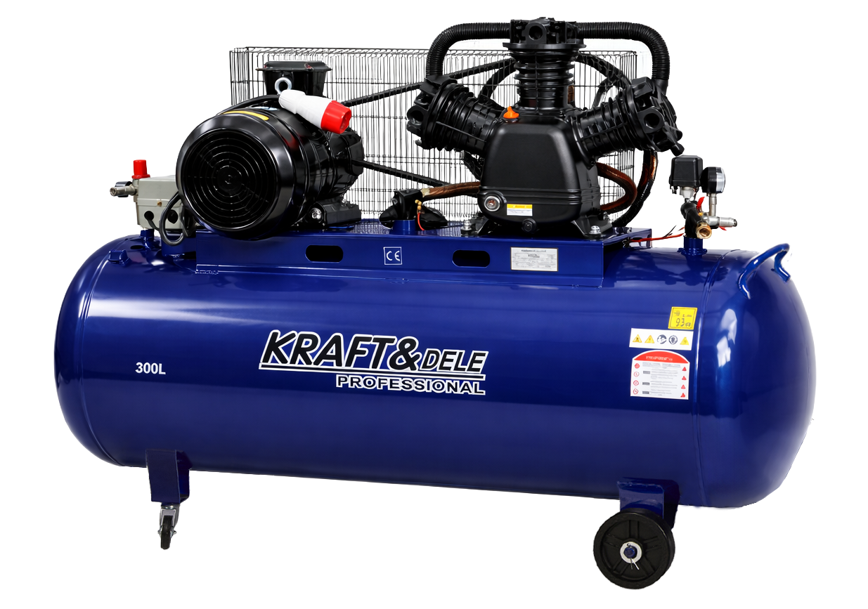 Model KD4057 wyposażony został w trzy tłoki o dużej średnicy, napędzane silnikiem indukcyjnym o wysokiej mocy, co przekłada się na bardzo dużą wydajność zasysania oraz wysoką wydajność efektywną. Napęd pasowy sprężarki zapewnia stabilną pracę i efektywne przenoszenie mocy, a smarowanie olejowe gwarantuje długą żywotność podzespołów. Wbudowany separator z reduktorem ciśnienia skutecznie oddziela wodę i olej z powietrza, zapewniając jego lepszą jakość na wyjściu. Duża butla o pojemności 300 litrów umożliwia komfortową pracę z wieloma urządzeniami pneumatycznymi.