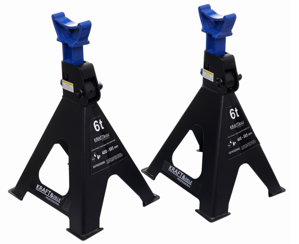Dzięki maksymalnej wysokości podnoszenia 585 mm i udźwigowi do 6 t, podstawki Kraft&Dele są idealnym pomocnikiem podczas pracy przy pojazdach wszelkiego rodzaju.