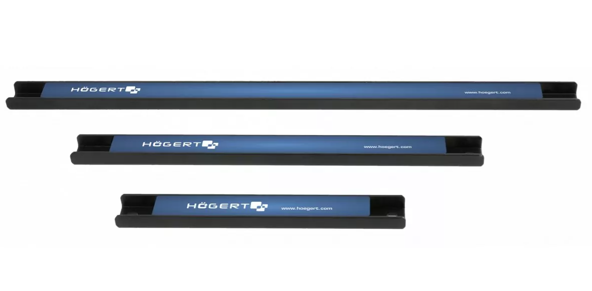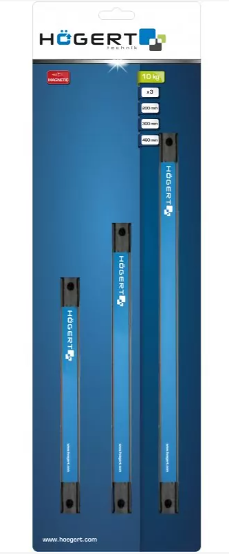 Zestaw 3 listew magnetycznych do zawieszania narzędzi. Przeznaczone do montażu na ścianie. Ułatwiają pracę poprzez uporządkowanie najczęściej używanych narzędzi, np. wkrętaków, kluczy, bitów, szczypiec. Przydatne w każdym warsztacie.