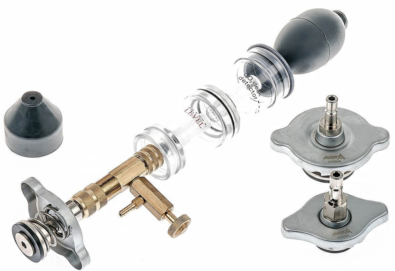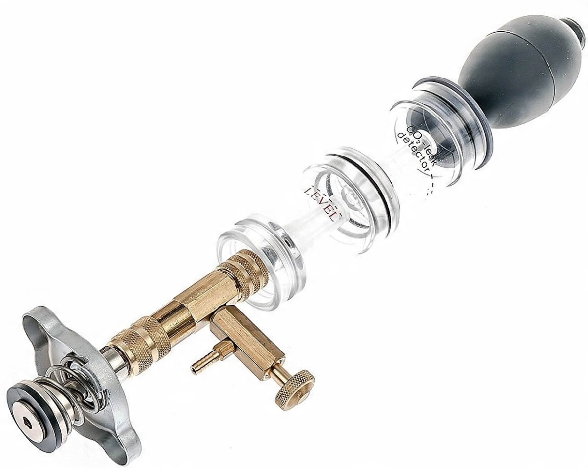 Przyrząd pozwala na łatwą diagnozę i szybkie wykrycie uszkodzeń uszczelki pod głowicą. W przypadku uszkodzonej uszczelki pod głowicą lub samej głowicy część gazów spalinowych. zawierających m.in. CO2 trafia do układu chłodzenia. Zasada działania przyrządu opiera się właśnie na pomiarze zawartości CO2 w układzie chłodzenia. Płyn reakcyjny w komorze testera będzie reagował z gazami z układu chłodzenia i w przypadku zwiększonej zawartości CO2 zmieni barwę. Dwukomorowa konstrukcja przyrządu (z filtrem pomiędzy komorami) pozwala na odseparowanie pozostałości w pierwszej komorze (np. kropel płynu chłodniczego). które mogłyby negatywnie wpłynąć na wynik testu.
