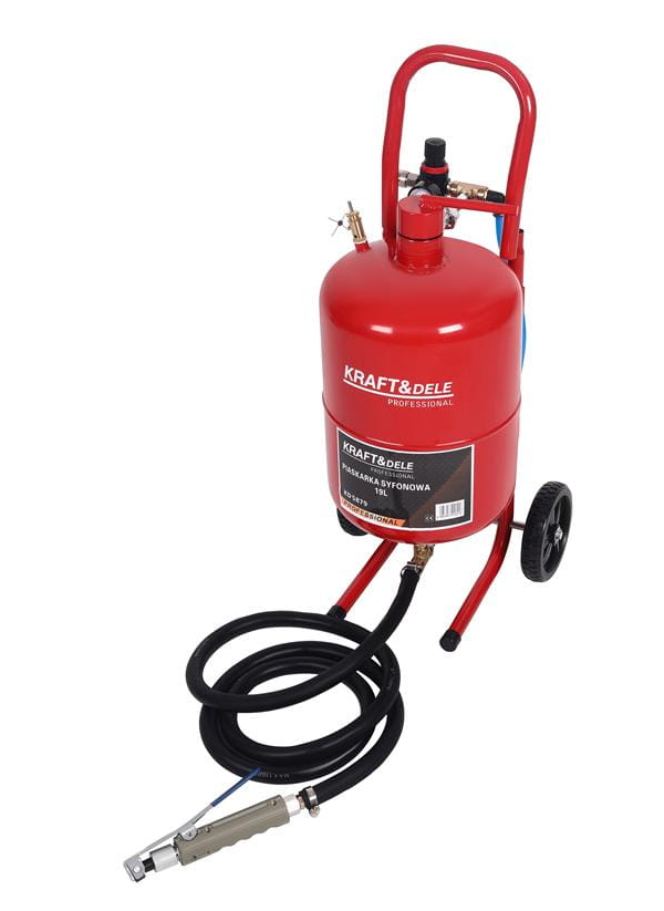PIASKARKA SYFONOWA 19L + AKCESORIA KD5879 to kompaktowe i wydajne urządzenie do profesjonalnego oczyszczania różnego rodzaju powierzchni z rdzy, farby, nalotów czy innych zanieczyszczeń. Dzięki zastosowaniu technologii syfonowej, piaskarka zapewnia równomierne i precyzyjne rozprowadzanie materiału ściernego, co przekłada się na szybkie i skuteczne efekty pracy.