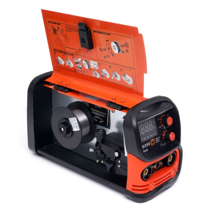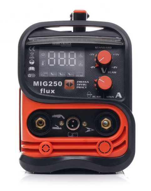 Przeznaczona do spawania metodą MIG z osłoną gazową oraz do spawania elektrodami otulonymi prądem stałym (DC).Półautomat spawalniczy MIG 250 został zaprojektowany do spawania drutami samo osłonowymi do 0,9 mm, drutami , a także elektrodami otulonymi o średnicy do 4 mm