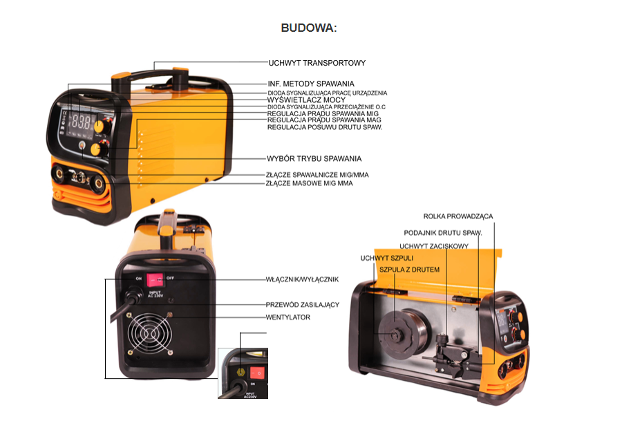 - Obsługiwane szpulce drutu: 1kg - 0,8 / 0,9 MM