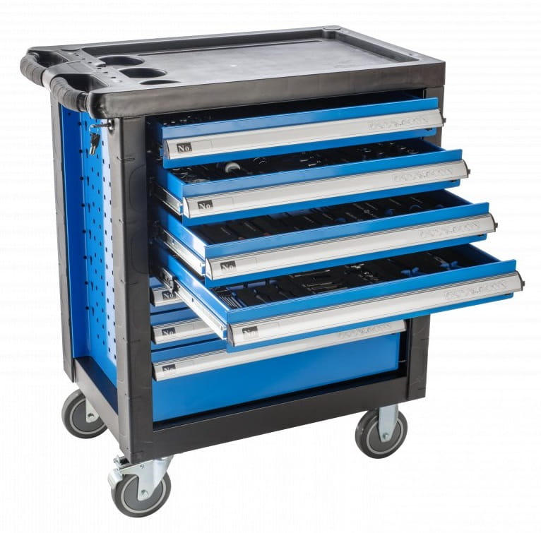 Praktyczna szafka narzędziowa 7-szufladowa z wyposażeniem. Znajdzie zastosowanie w warsztacie samochodowym lub w garażu każdego majsterkowicza.
