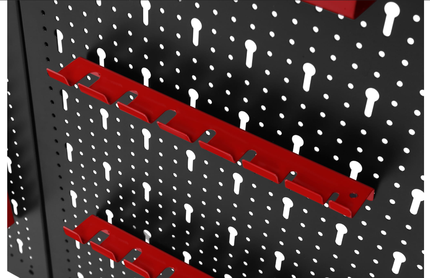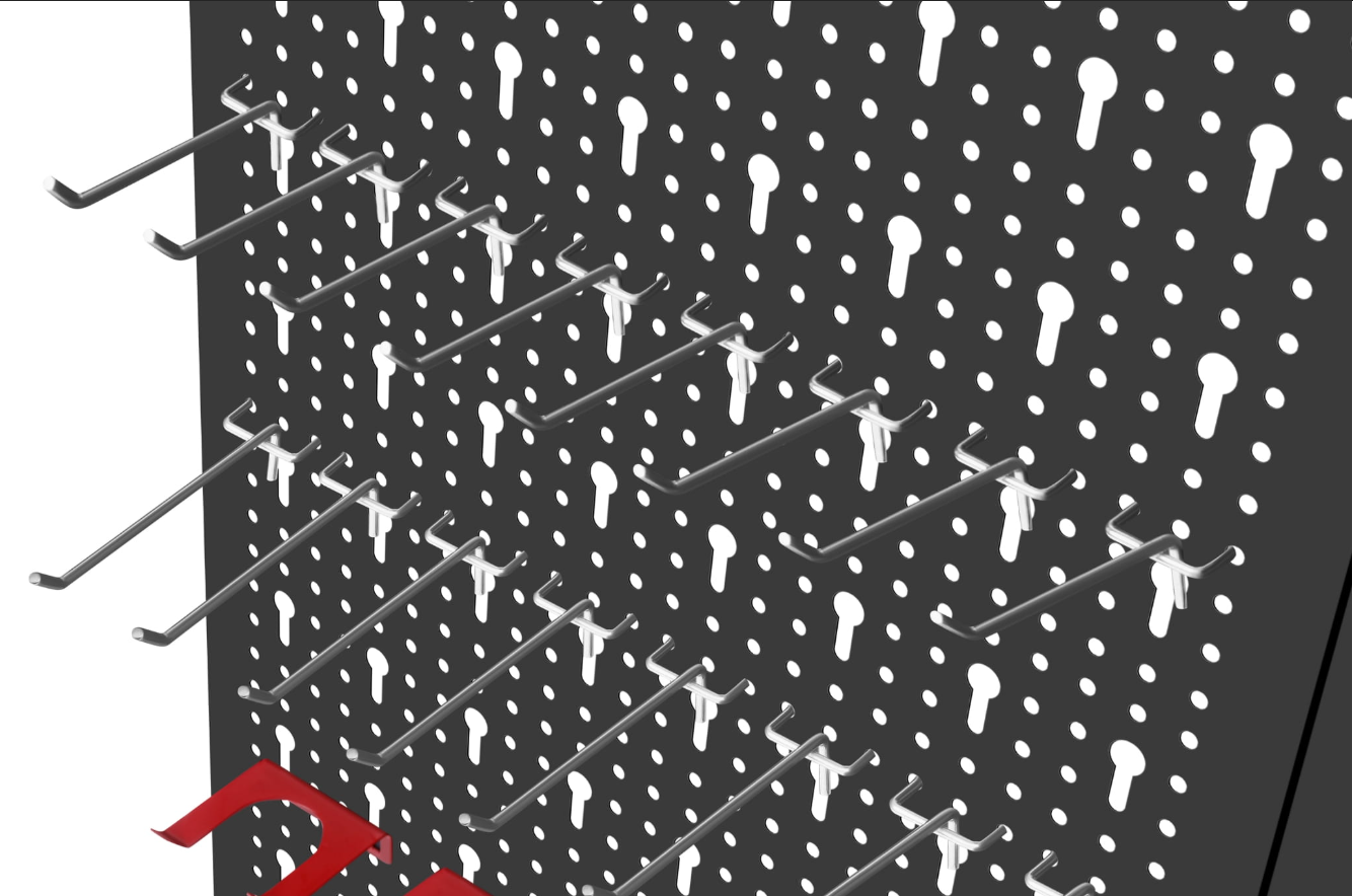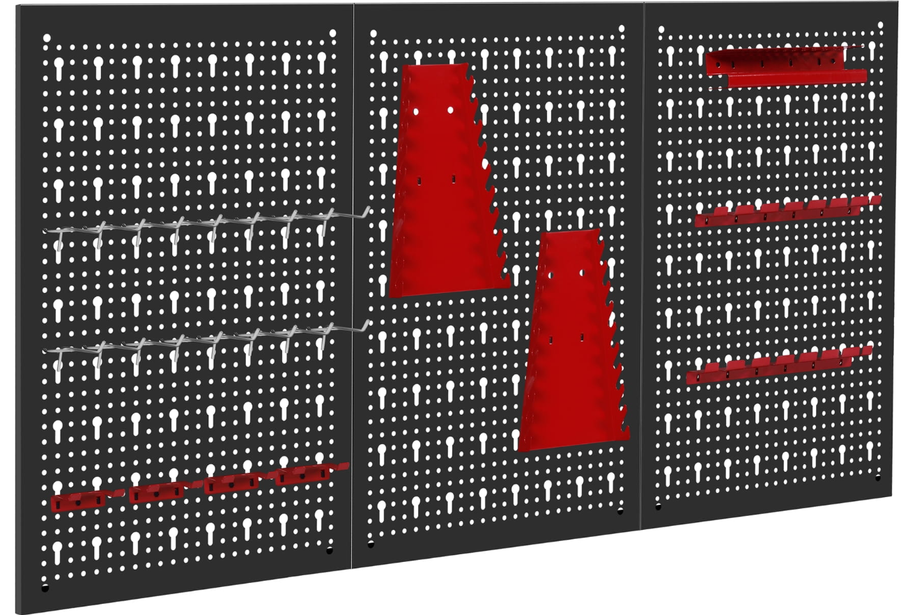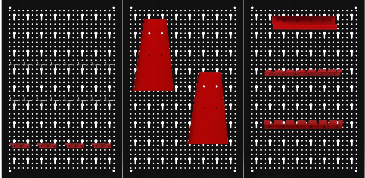 Trzyczęściowa ściana perforowana z 25 hakami i wspornikami