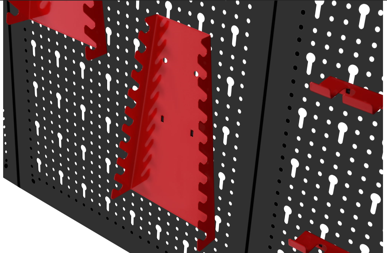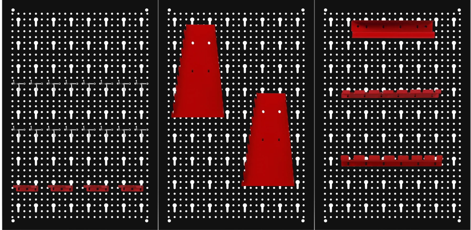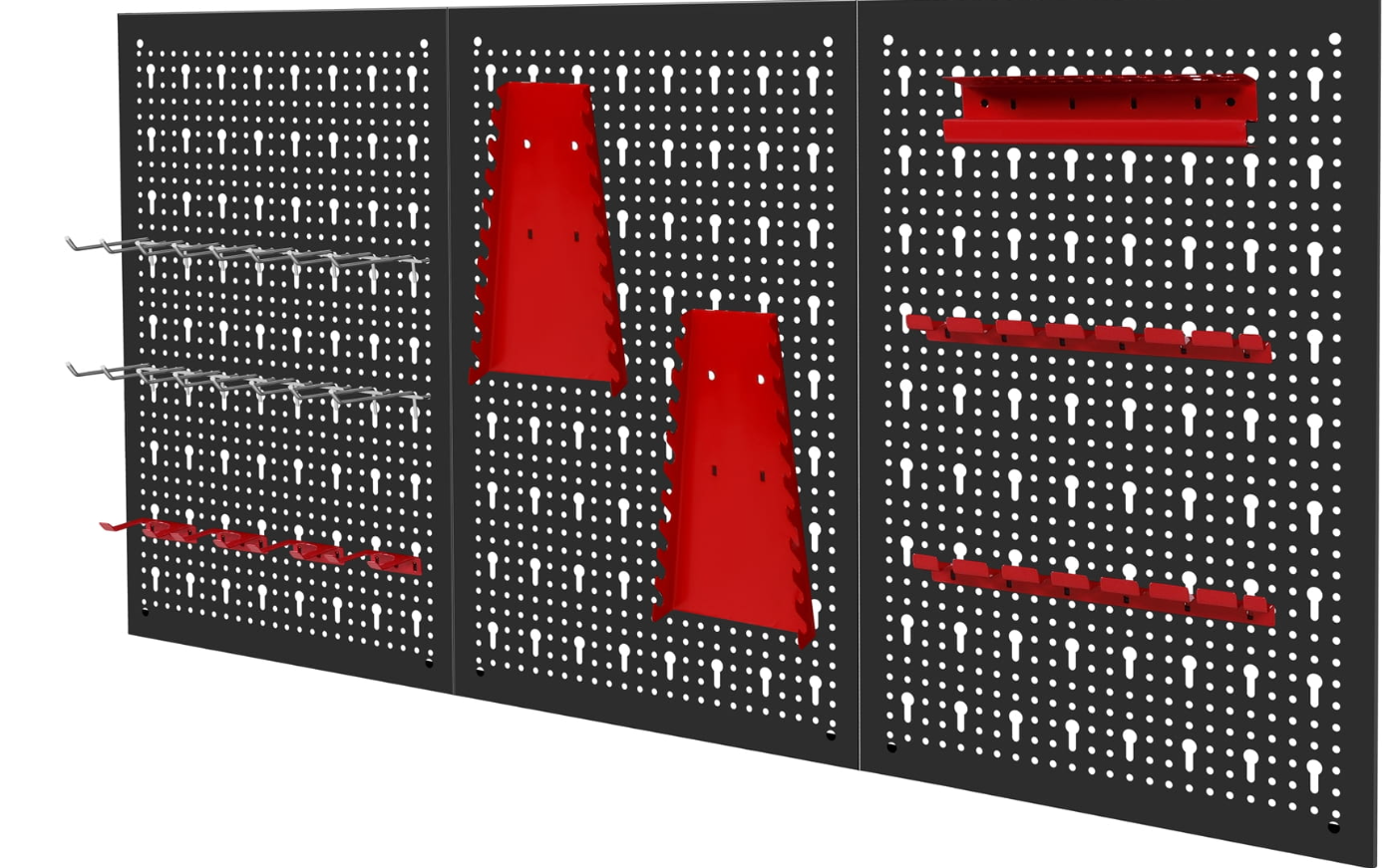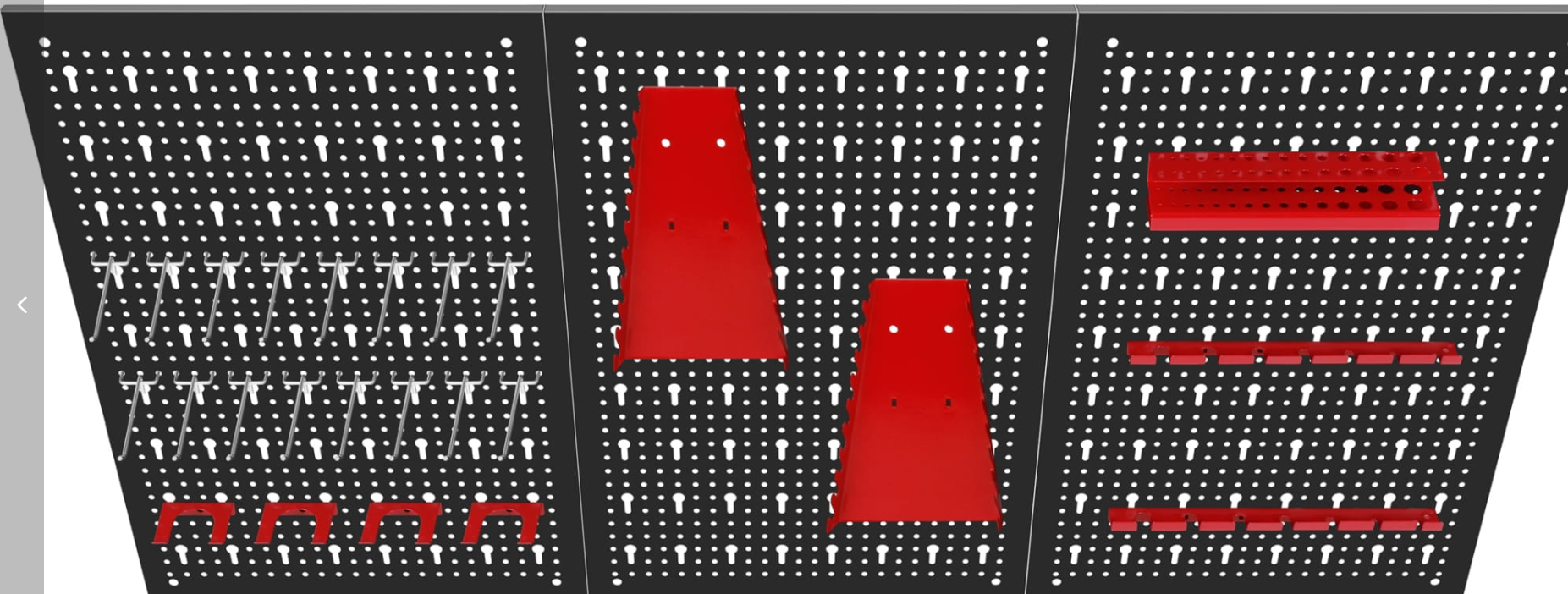 Trzyczęściowa ściana perforowana z 25 hakami i wspornikami