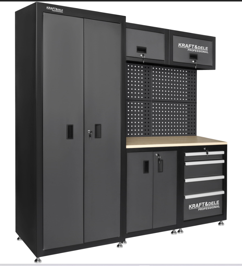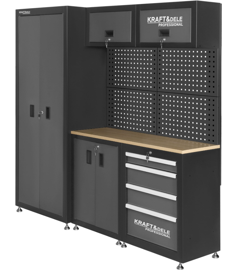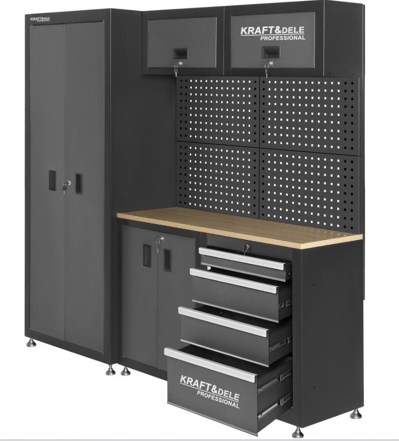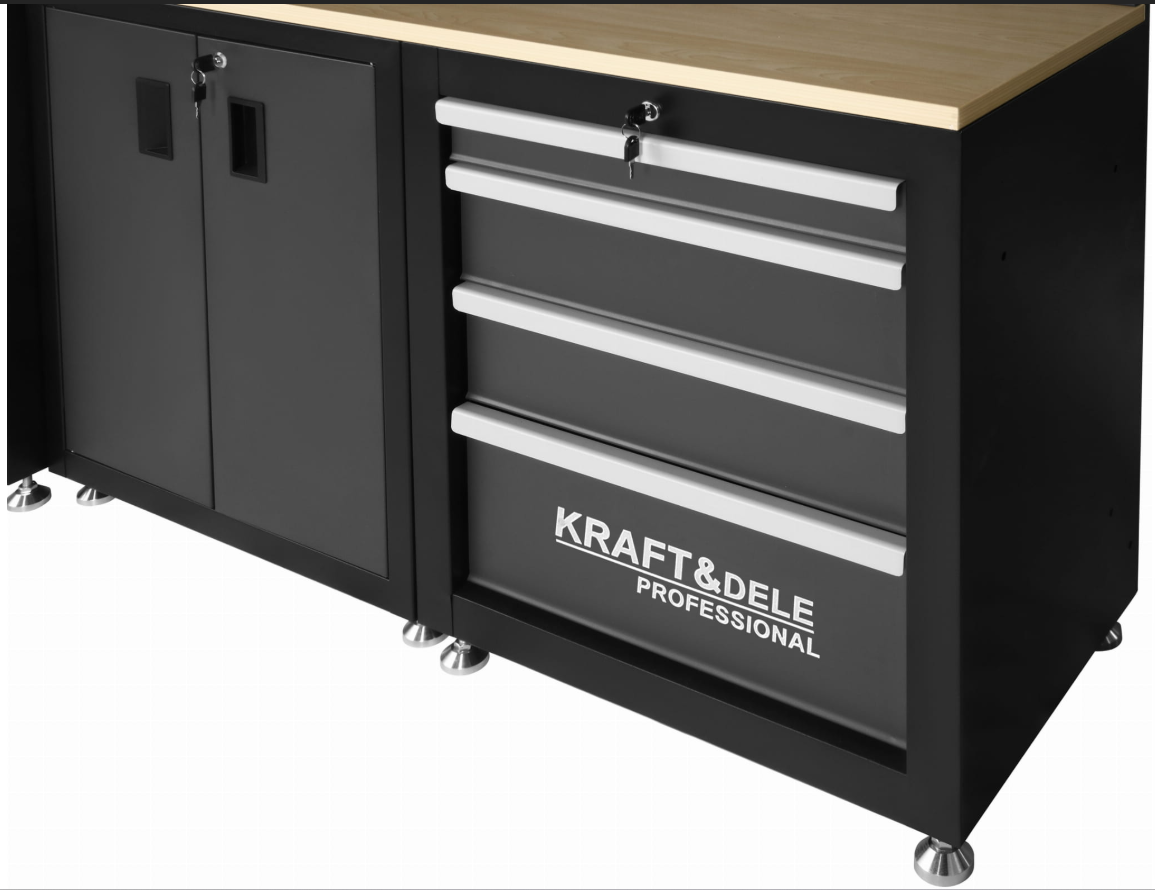 KD5862 to rozbudowany zestaw mebli warsztatowych marki KRAFT&DELE, zaprojektowany z myślą o profesjonalistach oraz wymagających majsterkowiczach. Solidna konstrukcja, przemyślany układ elementów oraz duża ilość miejsca do przechowywania sprawiają, że zestaw doskonale sprawdzi się w warsztacie, garażu czy pracowni technicznej.