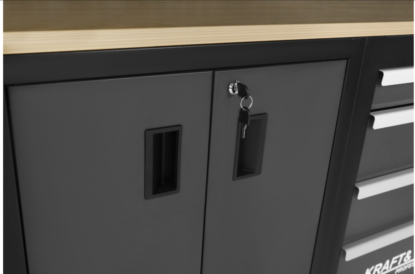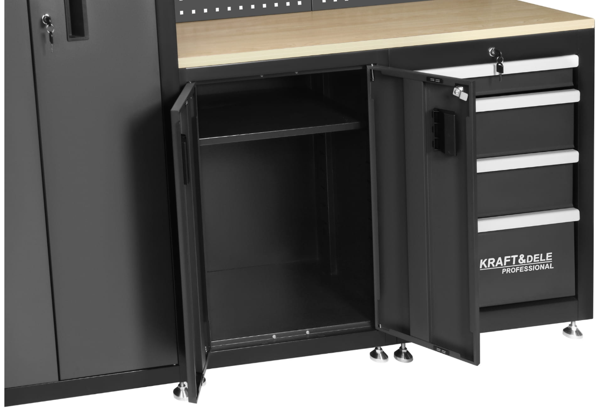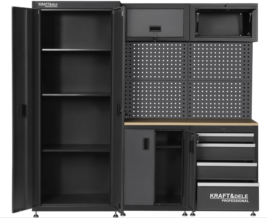 KD5862 to rozbudowany zestaw mebli warsztatowych marki KRAFT&DELE, zaprojektowany z myślą o profesjonalistach oraz wymagających majsterkowiczach. Solidna konstrukcja, przemyślany układ elementów oraz duża ilość miejsca do przechowywania sprawiają, że zestaw doskonale sprawdzi się w warsztacie, garażu czy pracowni technicznej.