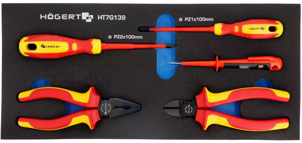 WKŁAD SZAFKI NARZĘDZIOWEJ, Zestaw szczypiec i wkrętaków 1000V, tester napięcia 5 szt., wkład EVA HOGERT HT7G139
